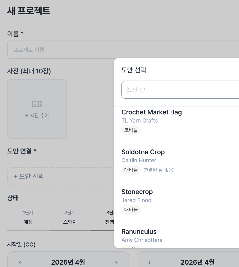 프로젝트에서 도안과 실을 연결하여 시작해요.