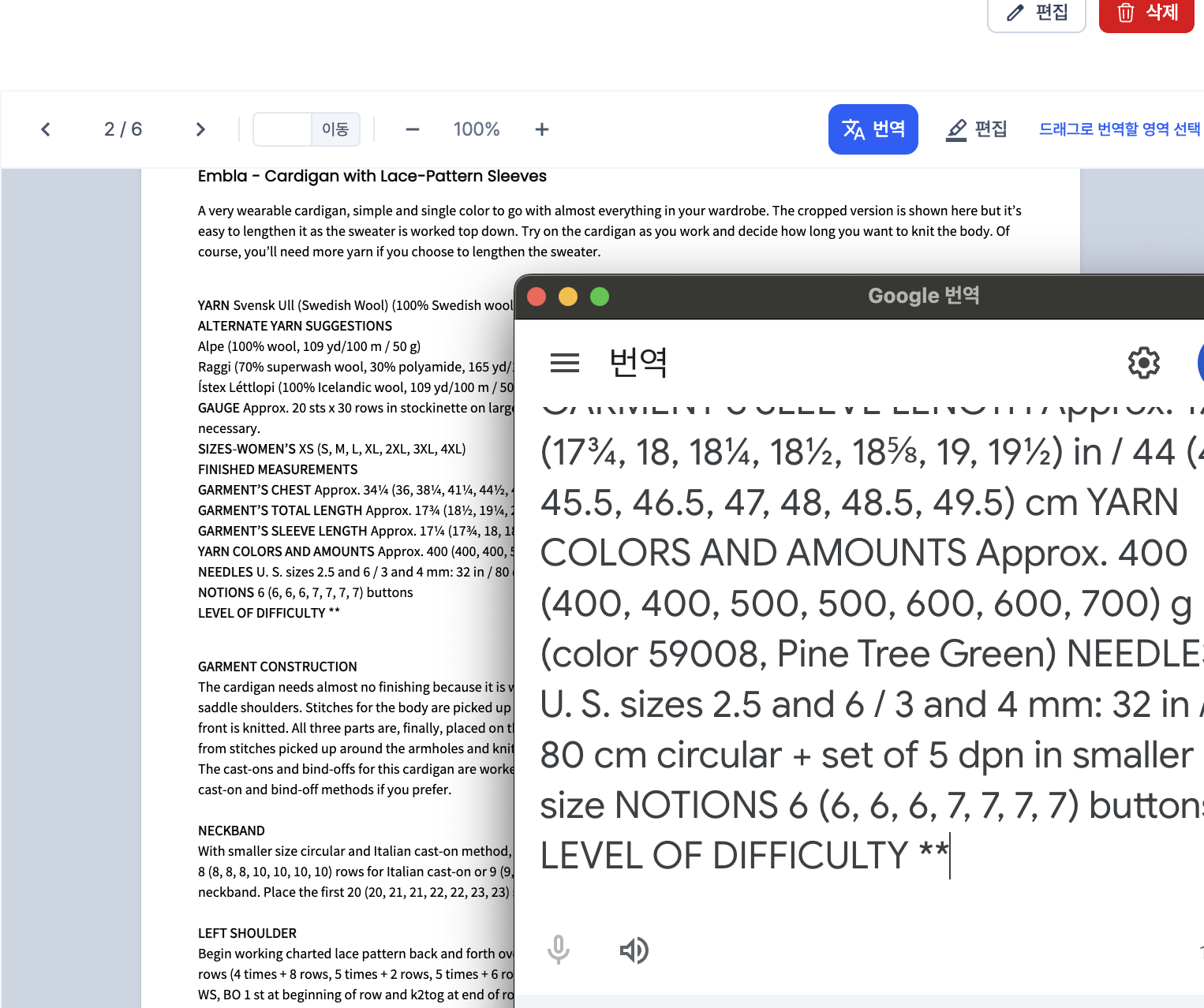 PDF 도안 자동 번역 & 코멘트 하이라이트완성한 작품 사진도 정리하고 싶은데, 영감을 주는 자료도 정리해두고 싶어요